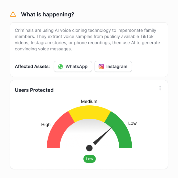 Receive personalized alerts and vulnerabilities about new AI scams, based on your device.